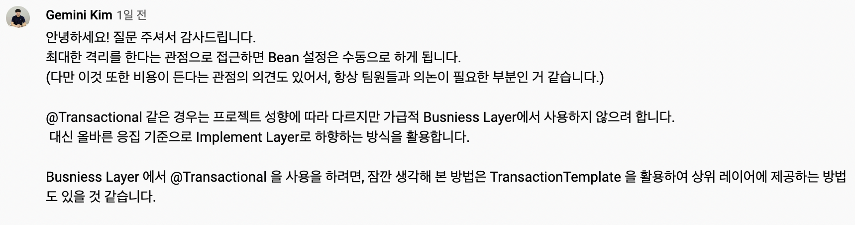 여기서의 나의 의문점? 아니 그려면 Bean 주입은 전부 수동으로 하나?? Transation은??