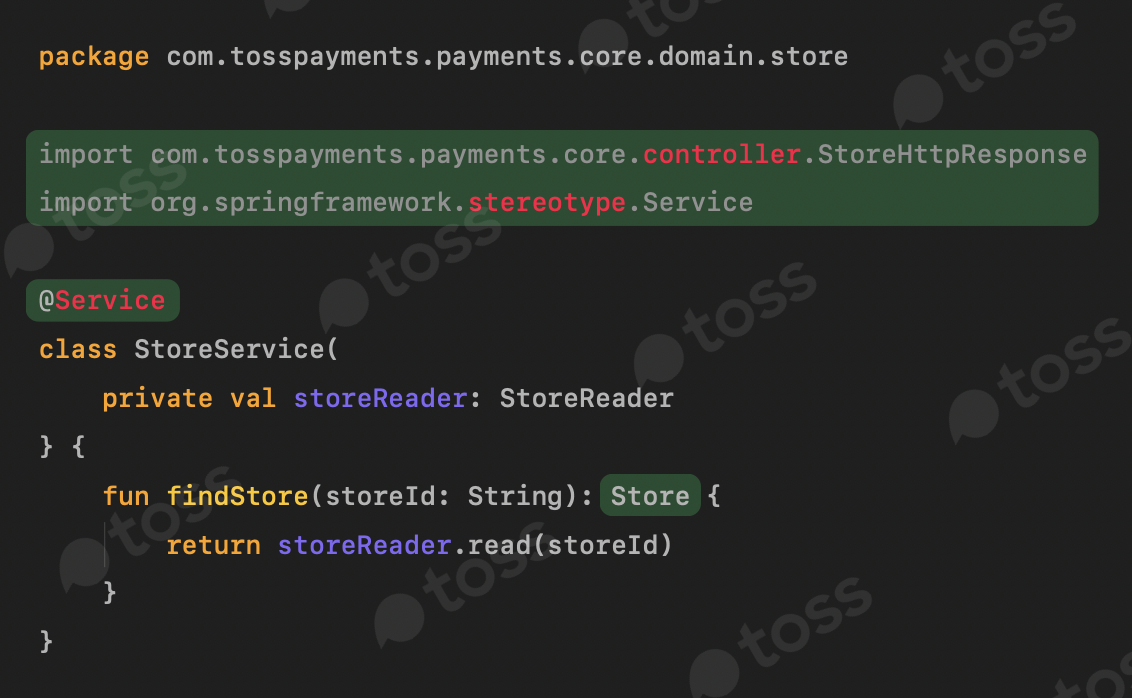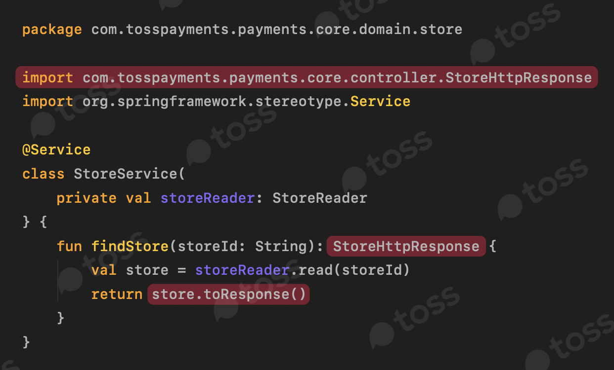 만약 위 코드처럼 Store class가 Presentation Layer의 class로 변환하는 로직을 가지고 있다면, Layer를 역류하는 import문이 생기게 됩니다.