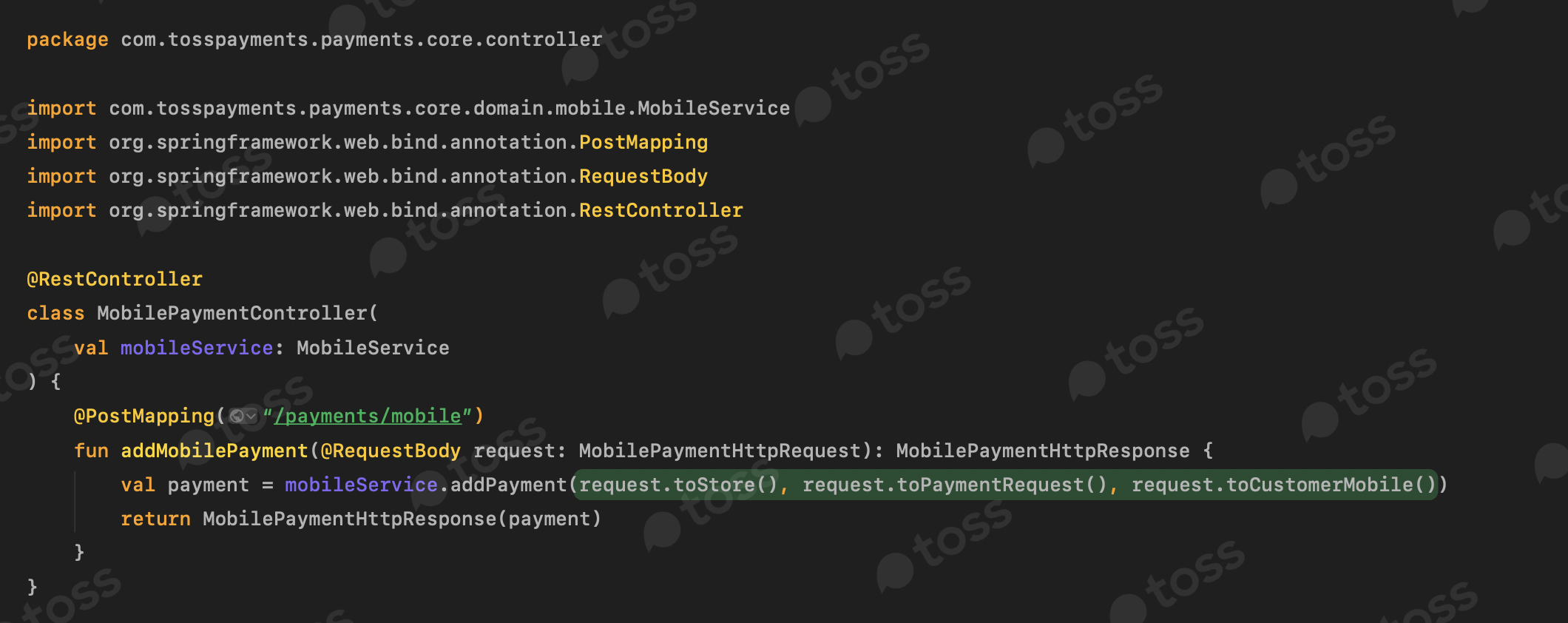 우선 MobilePaymentHttpRequest 는 DTO에 해당될 것이다.