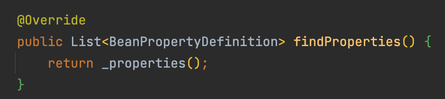 findProperties() 메서드 같은 경우 BasicBeanDescription 에 override 되어 있습니다.
