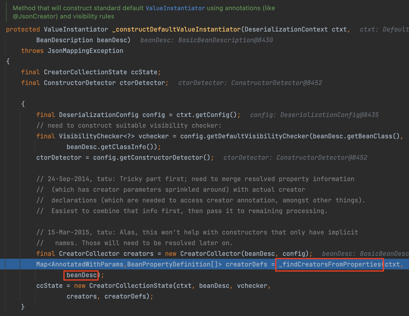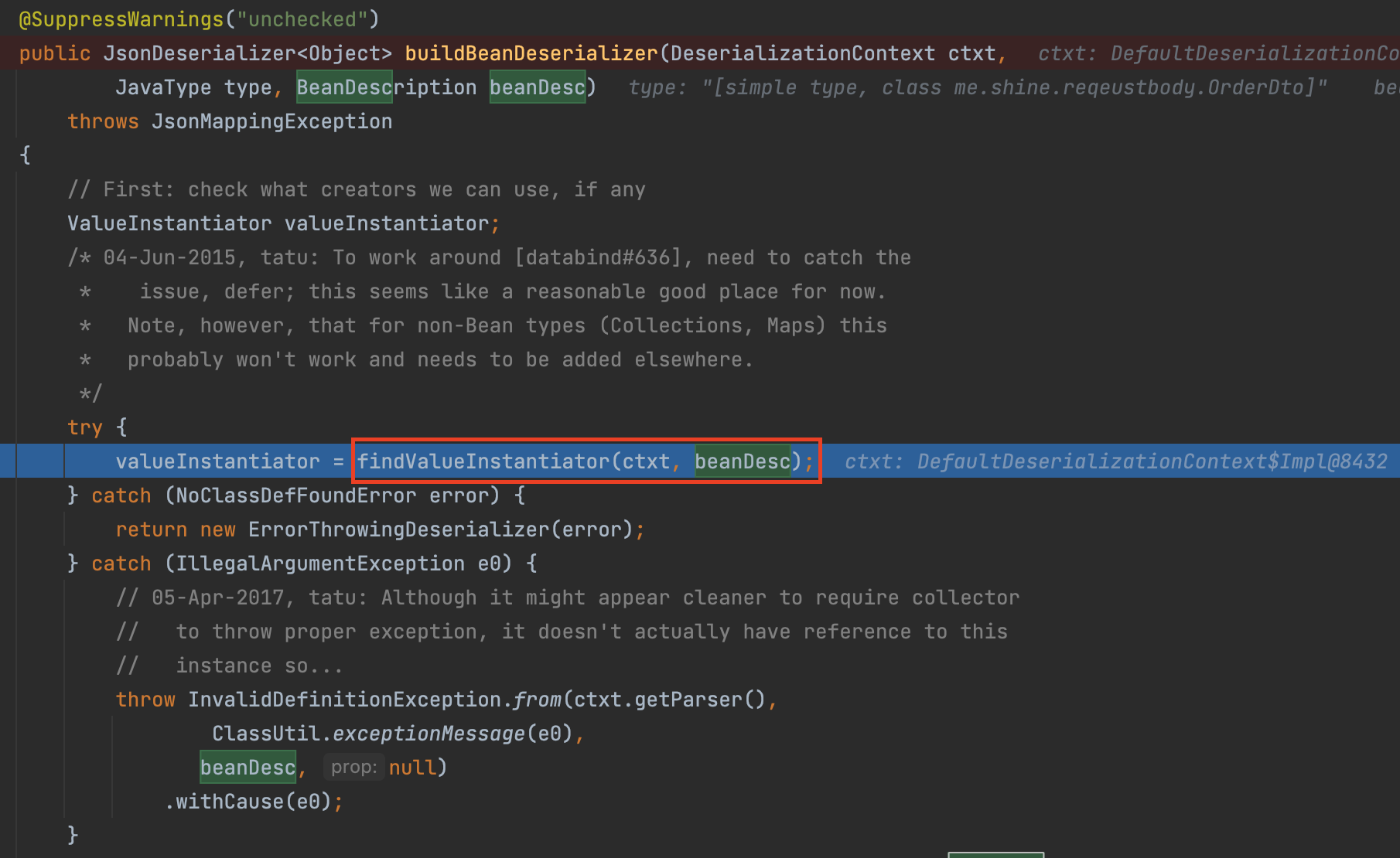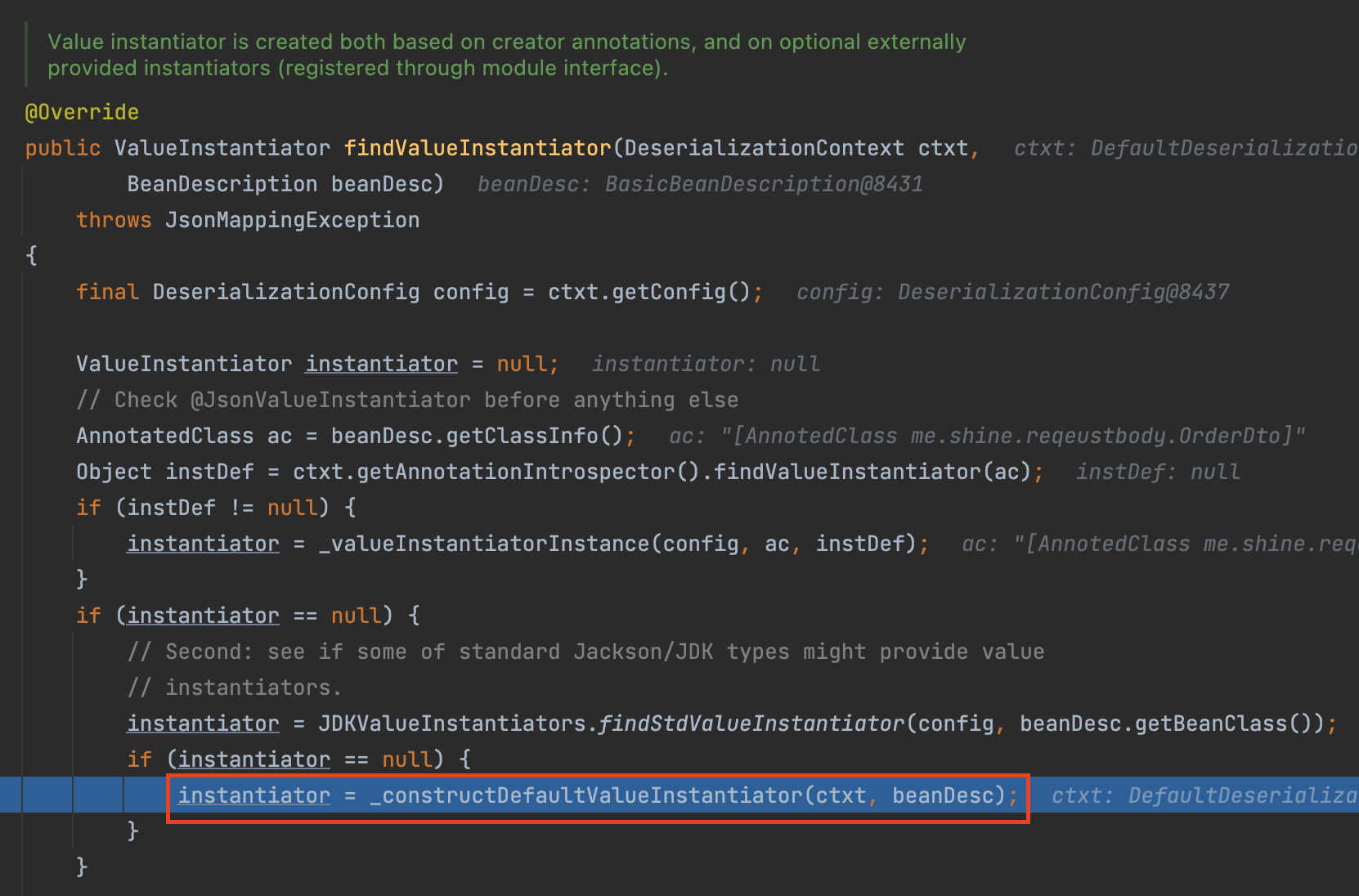 findValueInstantiator 내부 코드는 다음과 같습니다.