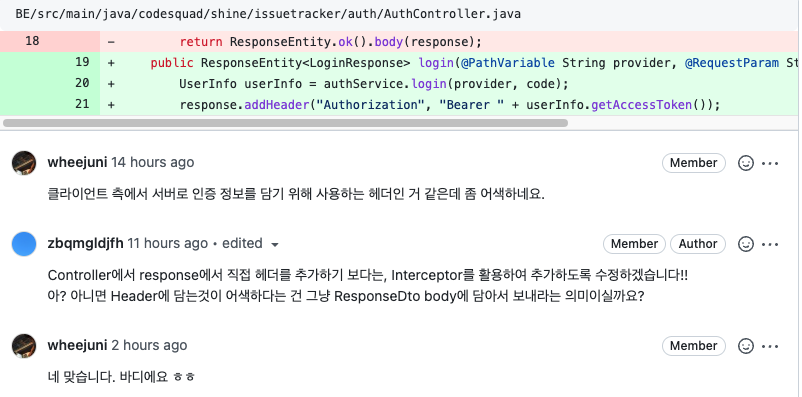 2. 팀원의 코드리뷰
