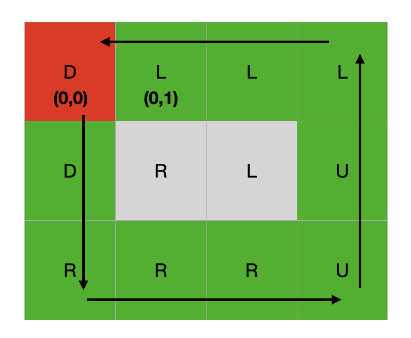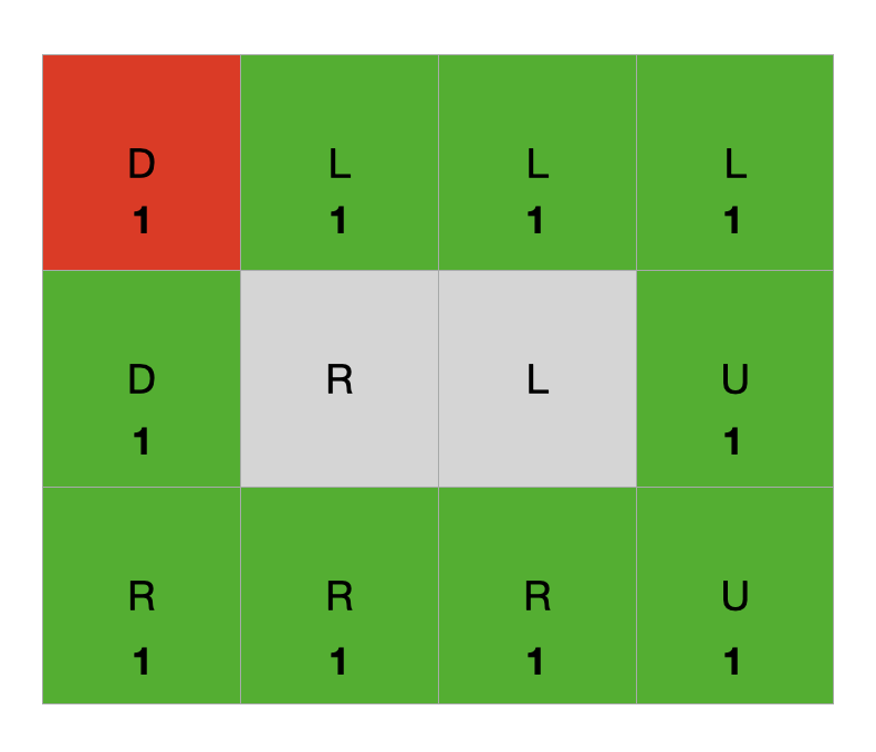 하지만 원래대로 R이 아니라, L 이였다면 (1,1) -> (1,2) -> (1,1) 로 되어 2로 값이 채워지게 된다.