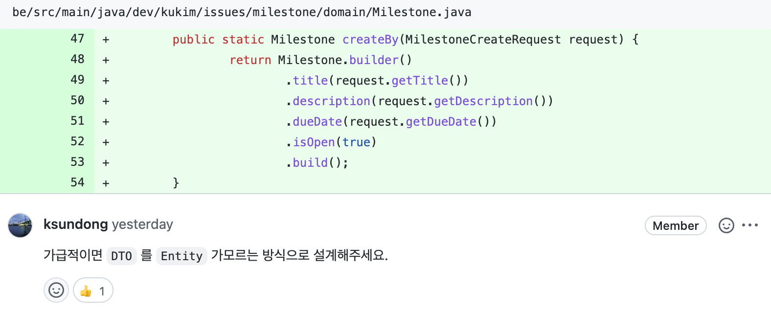 보통 나같은 경우 DTO에서는 Entity를 알고있고, Entity는 DTO를 모르도록 설계를 한다.