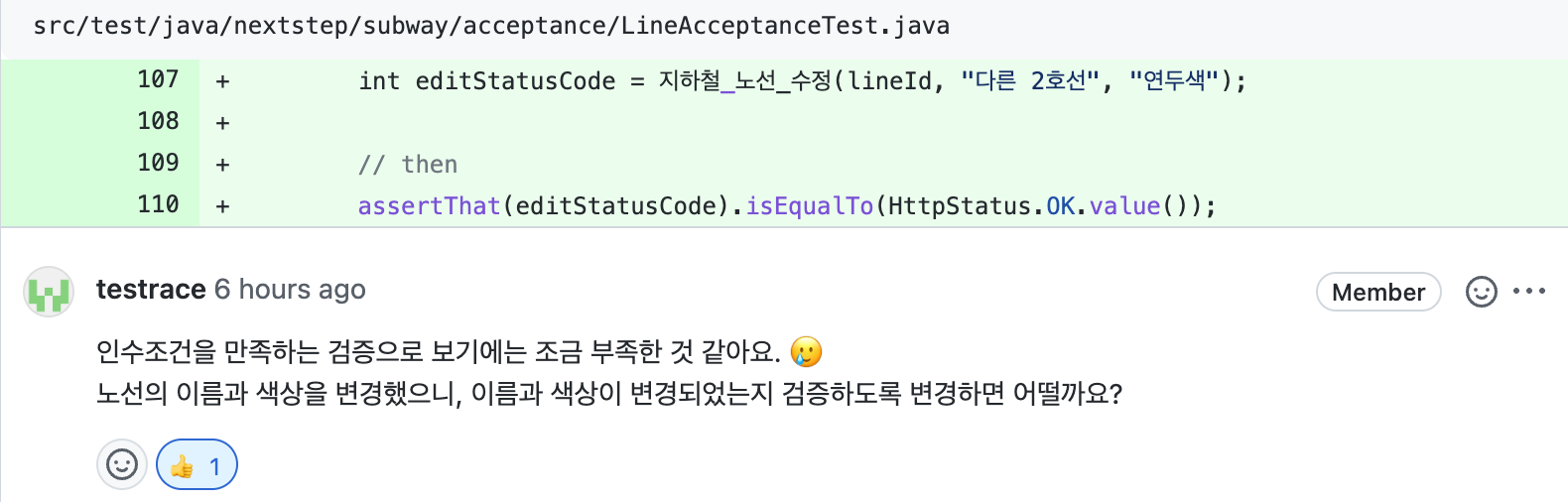 노선의 이름과 색상을 변경한 이후, 상태코드만 검증하고 있었다.