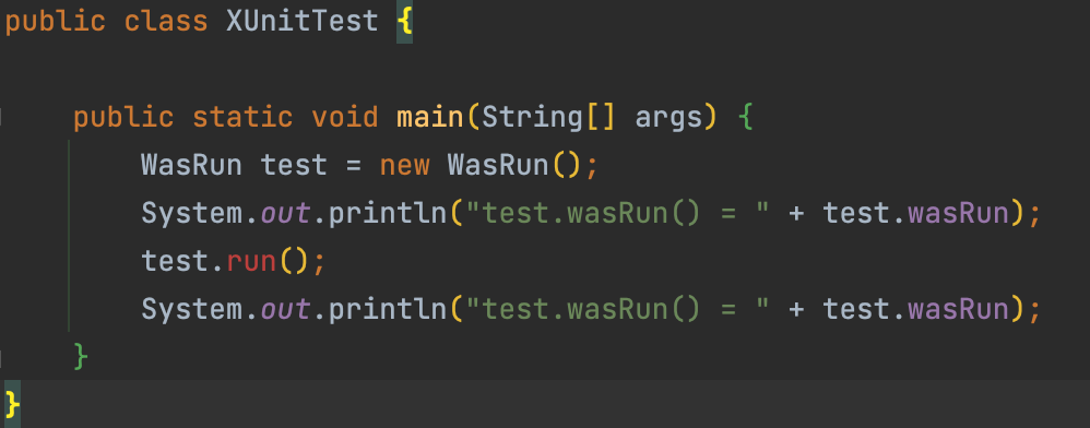WasRun test = new WasRun("testMethod"); // 실행할 테스트 메서드의 이름 전달