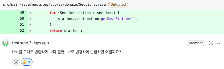new ArrayList <>()를 통해 반환하게 만들어, 외부에서 넘겨주는 List와 내부적으로 사용하는 인스턴스 변수가 참조하는 값이 다르도록 변경하였다!