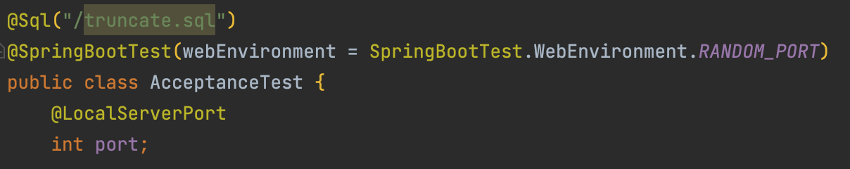 따라서 이 파일 안에 모든 테이블에 대한 TRUNCATE SQL을 미리 작성해 놓으면, 파일 하나와 어노테이션만으로 테스트 격리를 이뤄낼 수 있으니 꽤나 획기적인 방식이라고 볼 수 있다.
