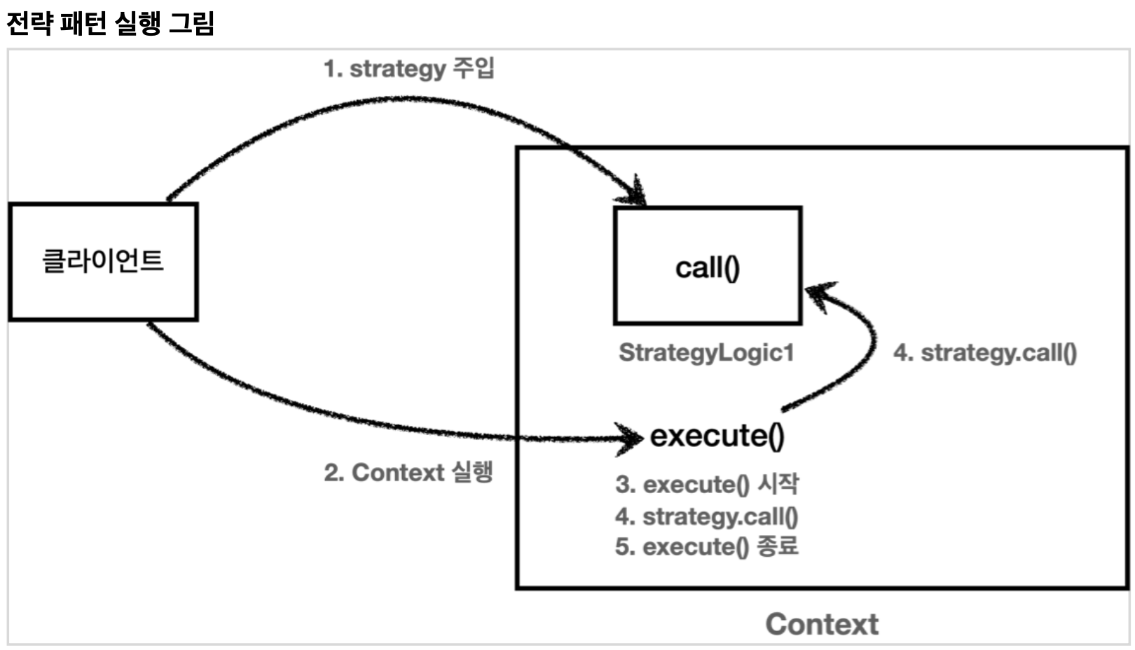 4. context 로직 중간에 strategy.call() 을 호출해서 주입 받은 strategy 로직을 실행한다.