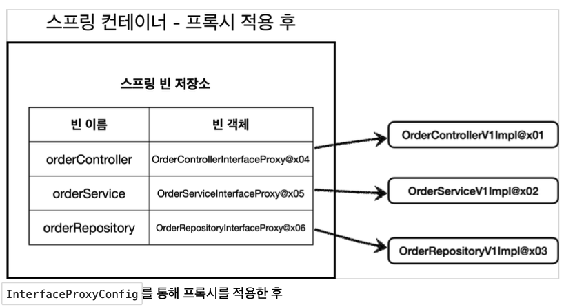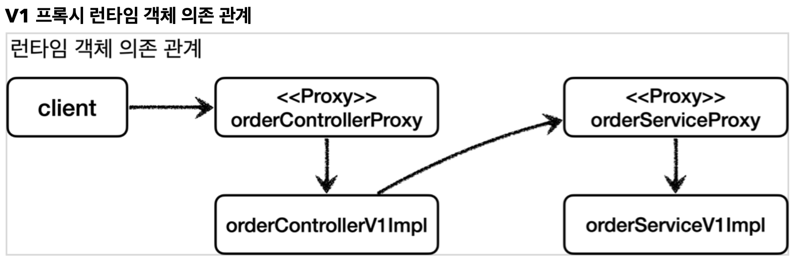 기존에는 스프링 빈이 orderControlerV1Impl , orderServiceV1Impl 같은 실제 객체를 반환했다.