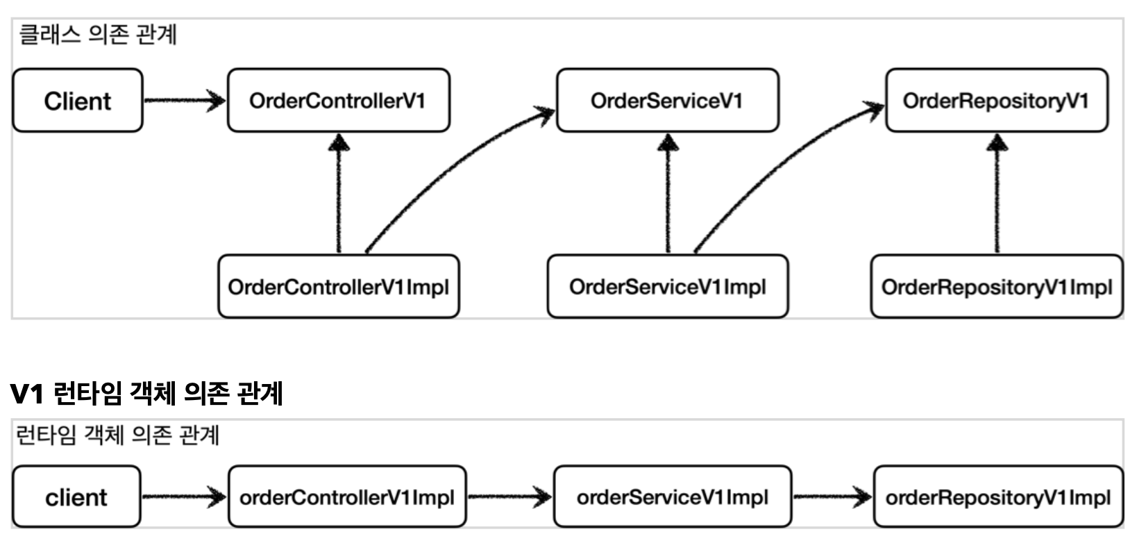 잠시 V1 버전의 클래스 의존 관계를 살펴보면 다음과 같다.