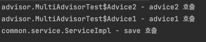 등록하는 순서대로 호출되기 때문에, advisor2 호출 후 1이 호출된다.