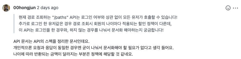 이 API는 로그인을 한 경우와, 하지 않는 경우를 나눠서 문서화 해야하는지 궁금합니다!