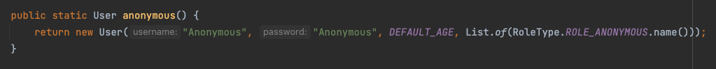 이름과 비밀번호는 anonymous 이며, 나이는 기본 20살, 역할을 익명 유저로 지정하게 되었다.