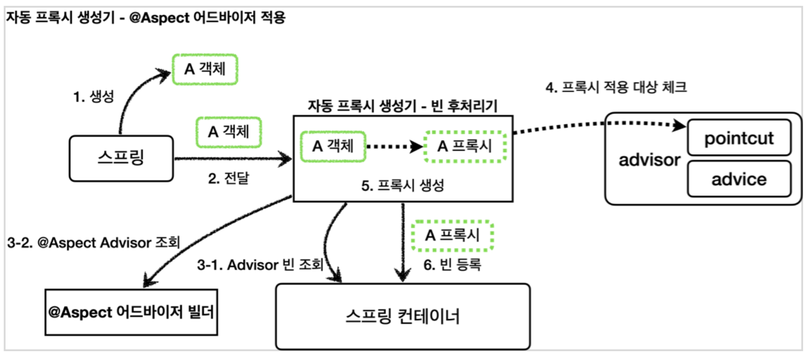 쉽게 이야기해서 지금까지 학습한 기능에 @Aspect 를 Advisor 로 변환해서 저장하는 기능도 한다.