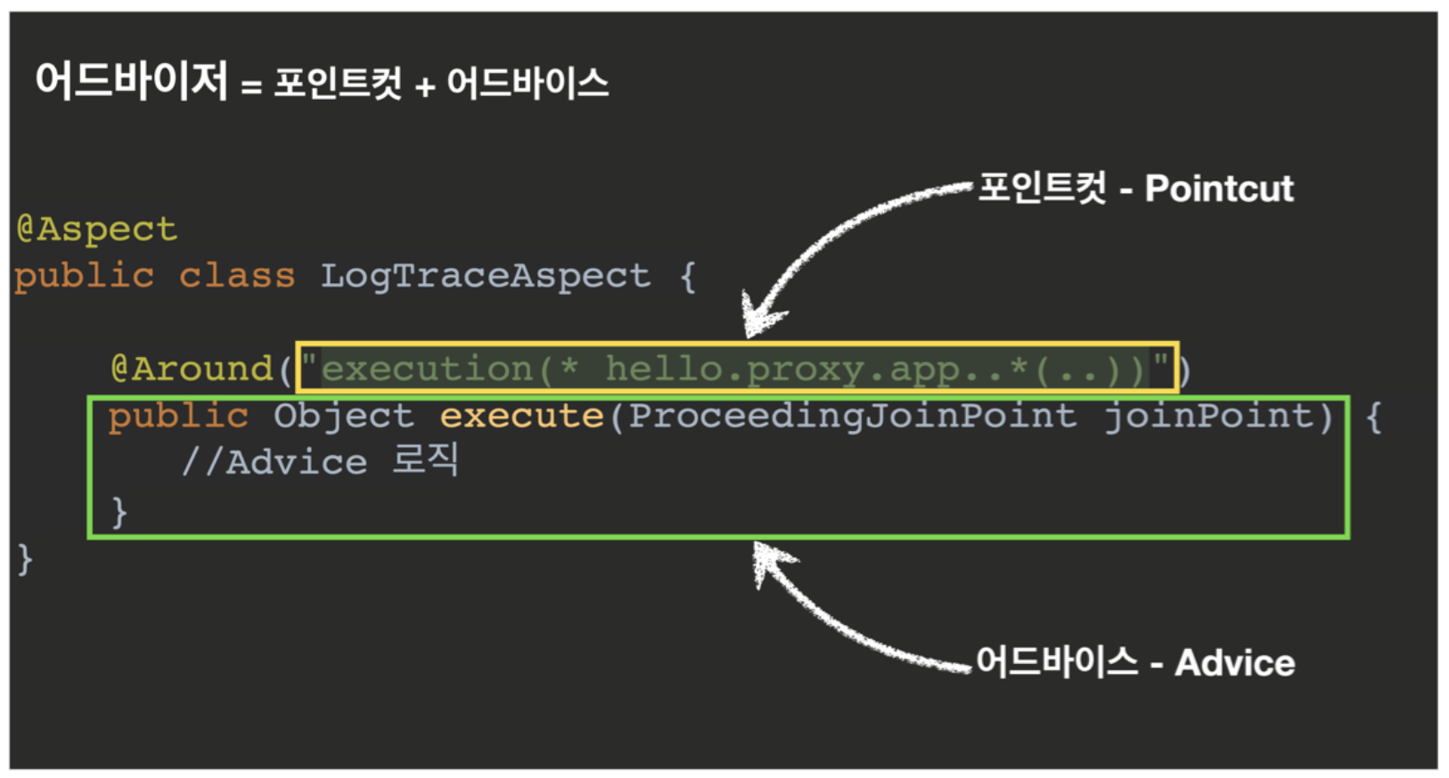 - @Around 의 메서드는 어드바이스( Advice )가 된다.