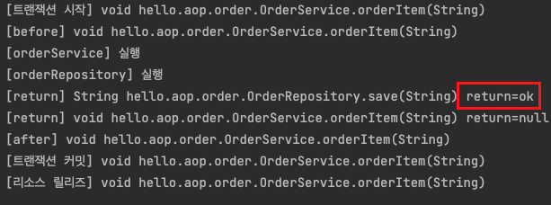 포인트것이 적용된 AOP 결과는 다음과 같다.