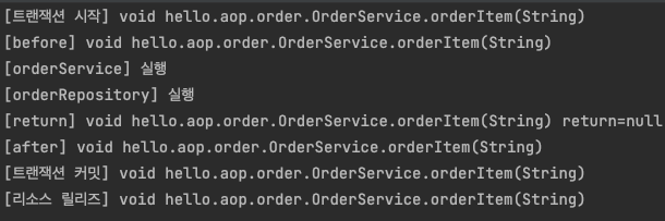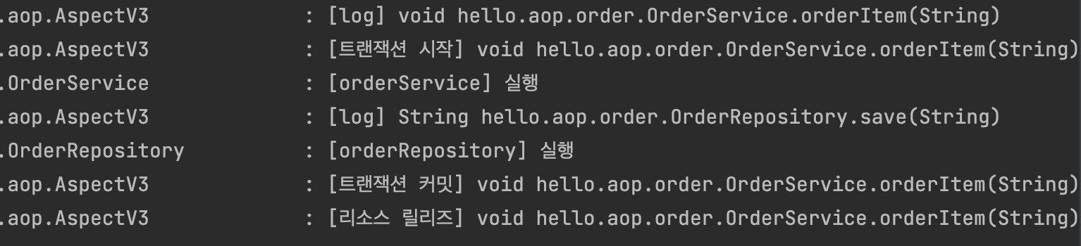 이제 OrderService , OrderRepository 의 모든 메서드는 AOP 적용의 대상이 된다.