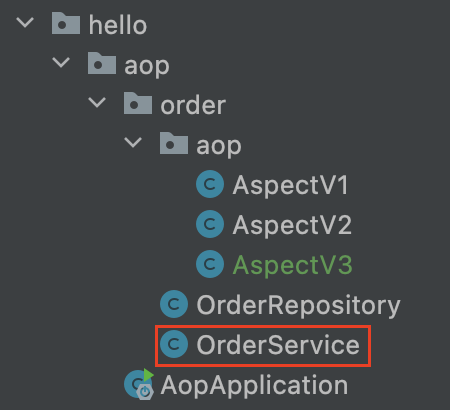 우리의 프로젝트에서는 hello.aop.order의 OrderService에만 트랜잭션 처리가 추가된다.