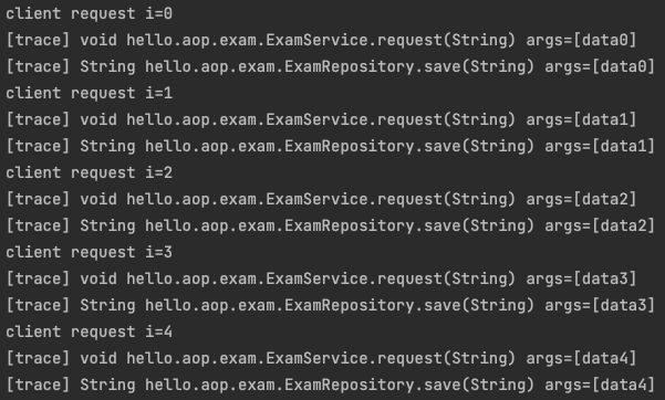 실행시 @Trace 가 붙은 request() , save() 호출시 로그가 잘 남는 것을 확인할 수 있다.