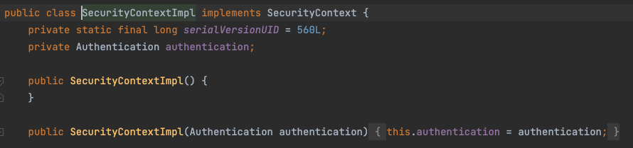 또한 SecurityContext는 인터페이스 이다. 이를 구현한 구현체는 다음과 같다.