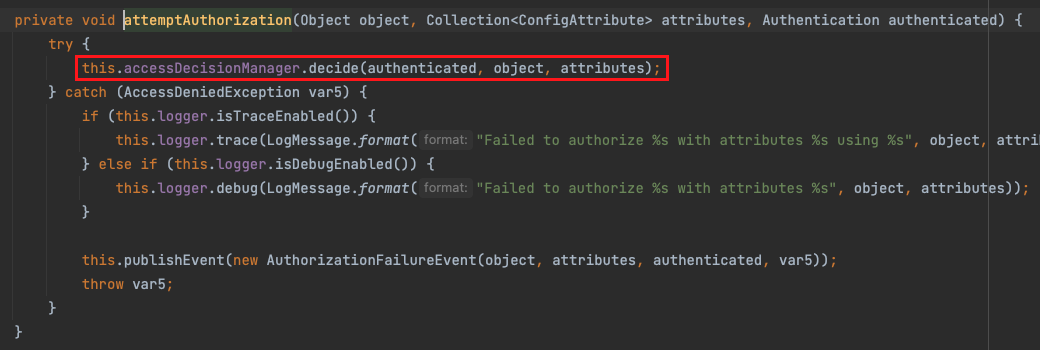내부의 accessDecisionManager를 통해 인가처리를 위임한다.