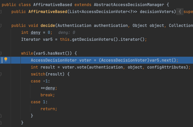 decide는 AffirmativeBased 내부에 있으며, 여기서 voter를 찾아와 검증하게 된다.