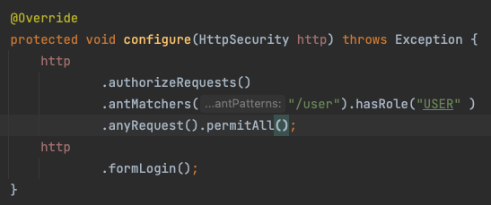 우선 SecurityConfig에 다음과 같이 설정하였다.