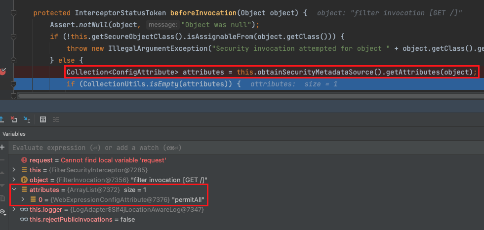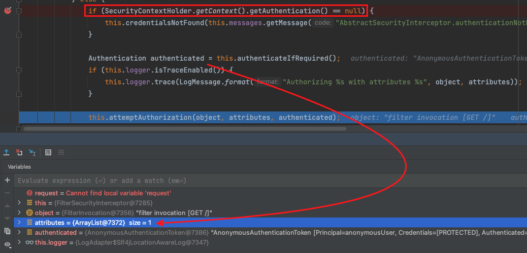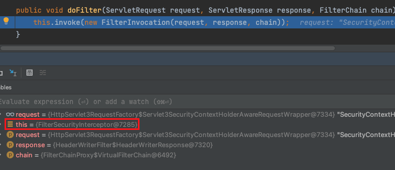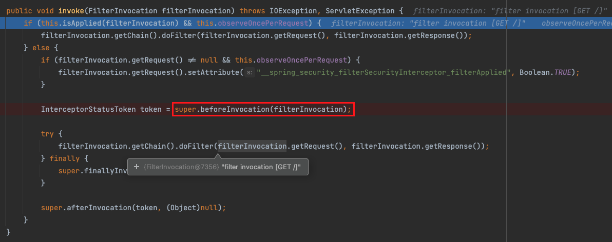 따라서 다음으로 FilterSecurityInterceptor의 doFilter로 넘어온다.