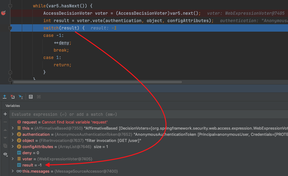 따라서 다음과 같이 voter에서 -1을 반환하게 되고, 결국 deny 된다.