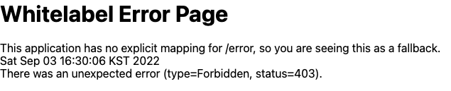 로그인 페이지로 이동 한 후, 다시 로그인을 해보면, 이전과 동일하게 동작하다 권한 검증 부분에서 권한이 없어 403을 발생시킨다.