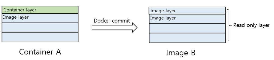 docker commit을 사용하게 되면 기존의 Image layer 들과 직접 작성한 Container Layer를 이용해 새로운 이미지를 생성합니다.