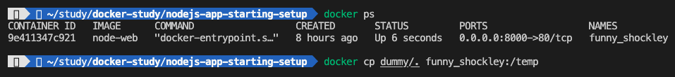 우리의 실행중인 컨테이너로 dummy/test.txt 파일을 복사해보자!