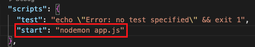 또한 다음과 같이 scripts에 start를 추가해줍시다.