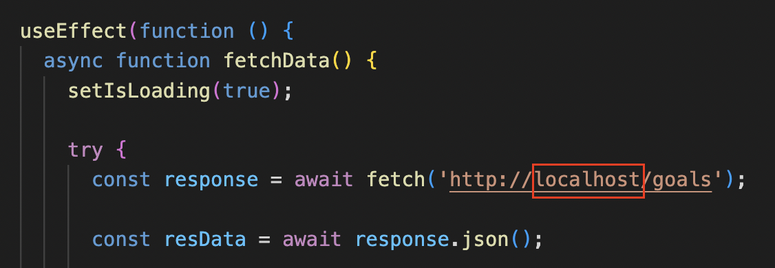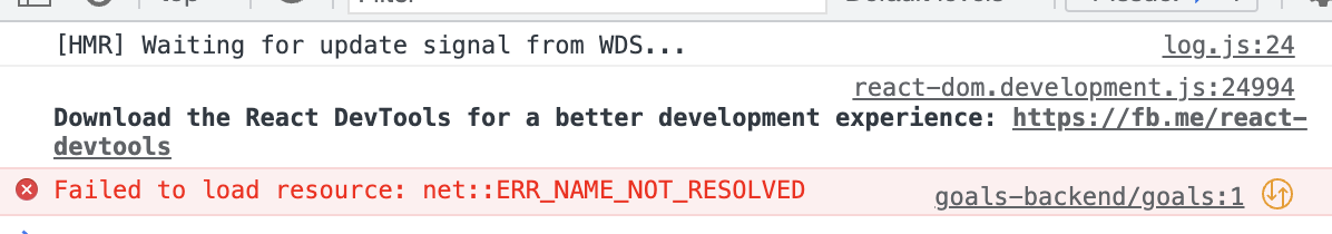 컨테이너 내부가 아닌, 브라우저 상이라 브라우저는 "goals-backend"이 무엇인지 알 수가 없습니다.