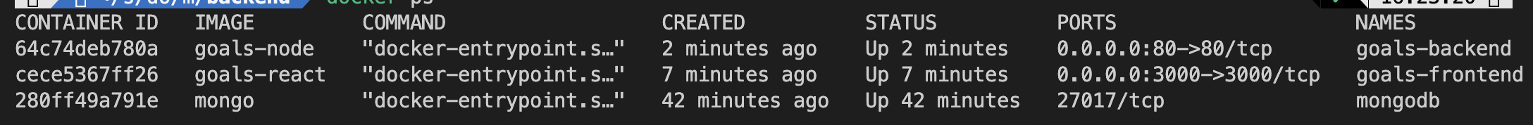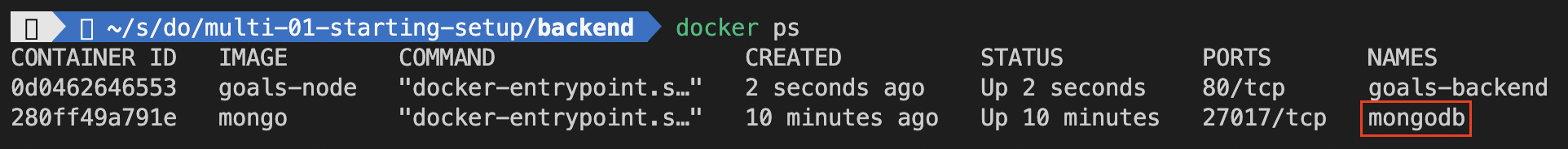 docker run --name goals-backend --rm -d -p 80:80 --network goals-net goals-node