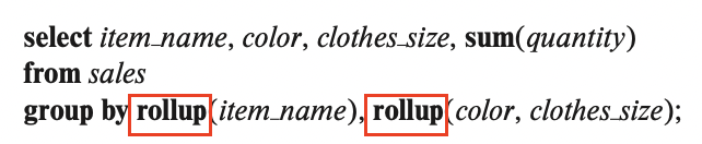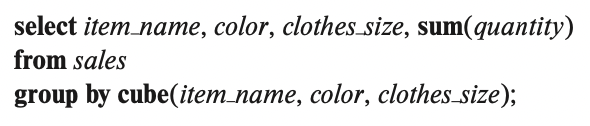 SQL은 cube와 rollup 연산을 사용하여 group by 연산자의 일반화를 제공한다.
