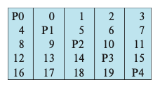 다음은 0부터 19까지 20개의 블록과 패리티 블록을 어떻게 배치하는지 보여준다.