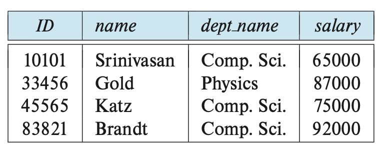 다음과 같은 학교의 instructor 레코드 파일을 생각해보자.