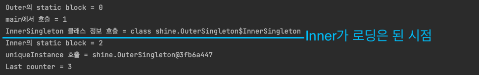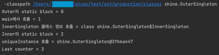 해당 값(class shine.OuterSingleton$InnerSingleton)이 표시가 되었다.