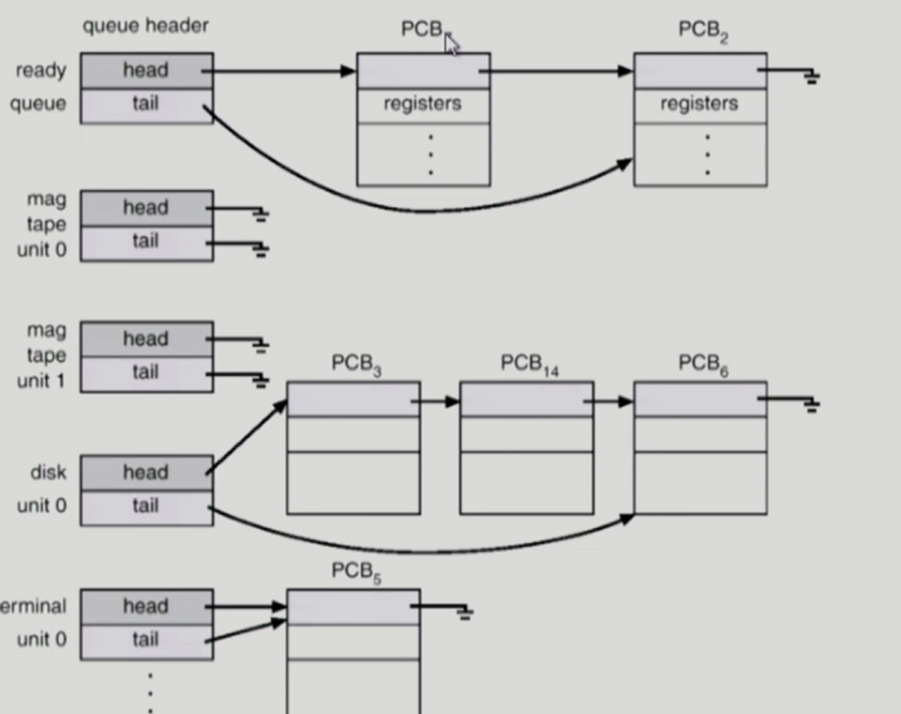 이외에 프로세스는 공유 데이터에 접근하거나, 디스크, 키보드, 디스크 등 종류에 따라 그에 맞는 큐에 줄을 서게 된다.
