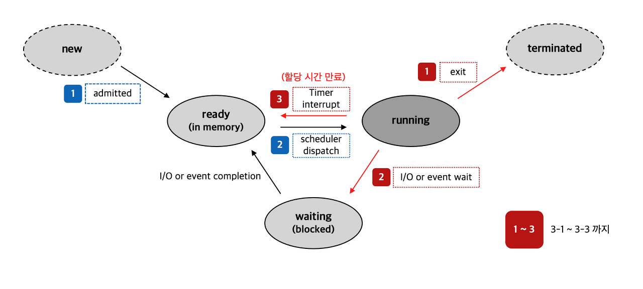 프로세스는 다음과 같이 상태가 변경되며 수행된다.