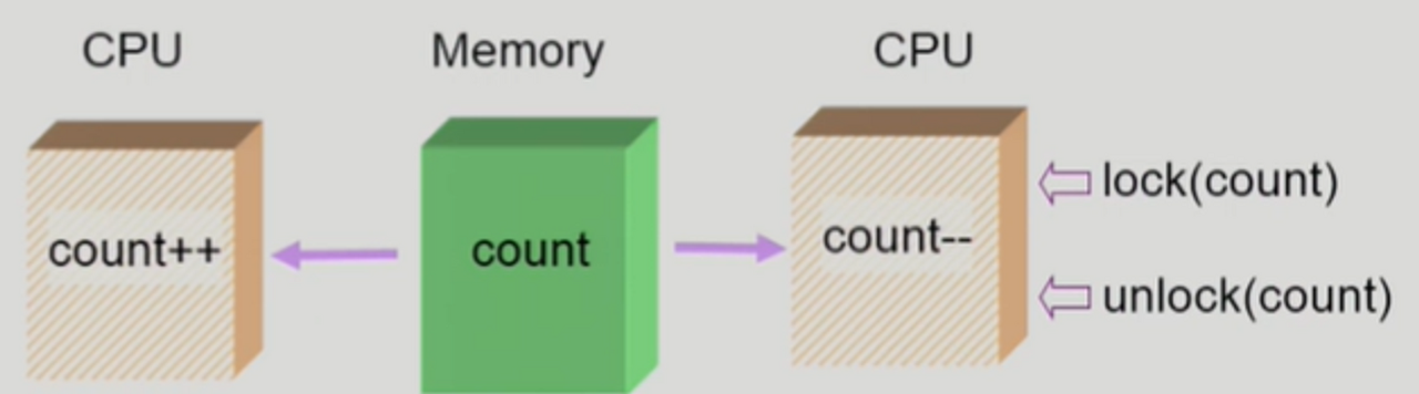 예를 들어 메모리에 count 변수가 있고 서로 다른 CPU가 각각 증가 연산, 감소 연산을 한다고 가정해 보자.