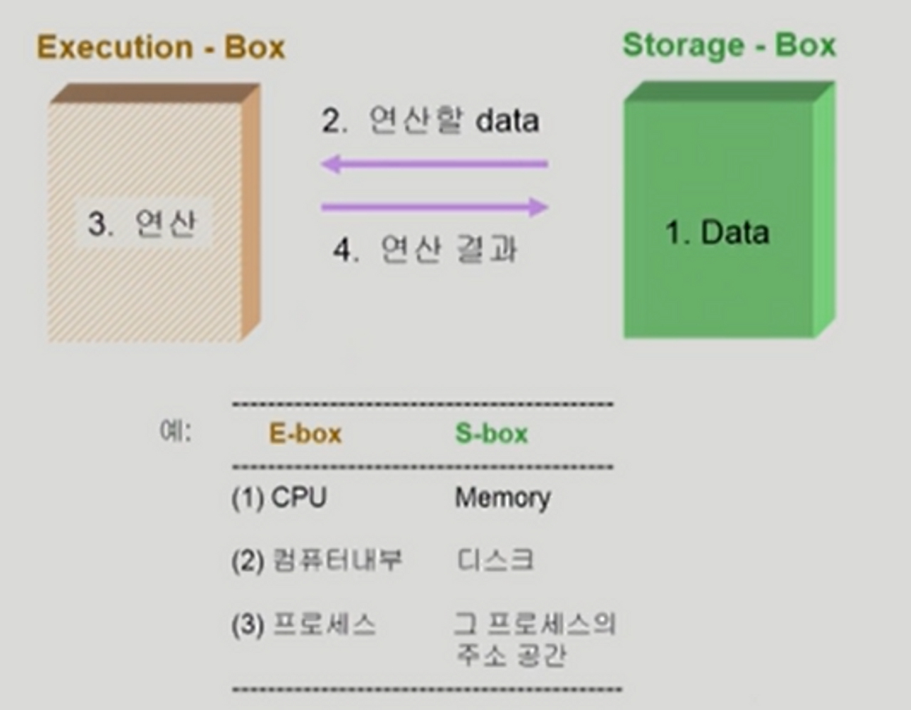 컴퓨터 시스템에서 데이터 연산은 저장 공간과 실행 공간이 아래와 같은 흐름으로 동작하면서 이루어 진다.