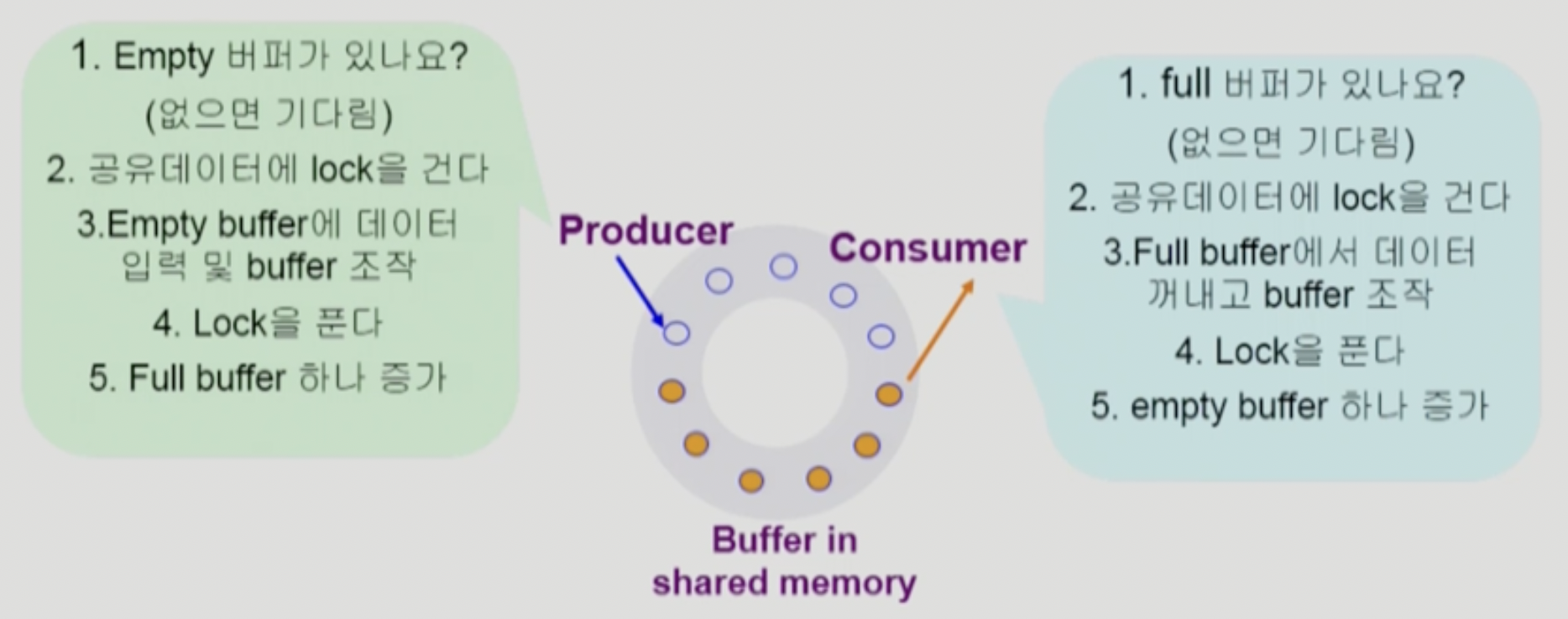 생산자는 이렇게 비어있는 버퍼의 공간이 생길때까지 기다려야 한다.