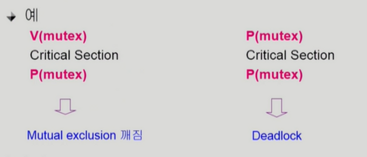 위 사진에서 왼쪽과 같이 V, P연산의 순서를 잘못 정할수도 있고, 오른쪽 처럼 동일한 연산만 2번 사용하는 휴먼 에러가 발생할 수 있다.