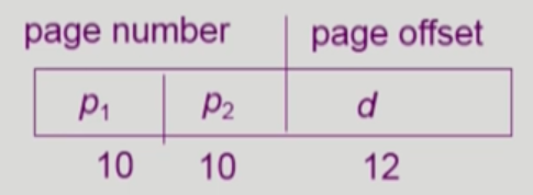 - 프로세스의 논리적 주소를 두 종류의 페이지 번호(P1, P2)와 페이지 오프셋(d)으로 구분한다.