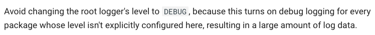 DEBUG로 설정하게 될 경우, 수 백 줄의 DEBUG가 모두 나와 로그를 알아보기 힘들다는 단점이 있기 때문입니다.