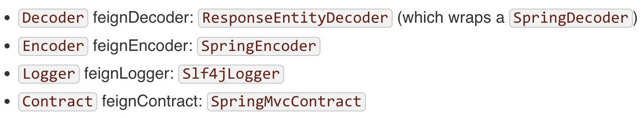 찾아보니 FeignClient는 빈으로 생성될 때 설정된 configuration을 읽어서 생성되는데 configuration 내부에는 Client 생성 시 사용할 Decoder, Encoder, Logger, Contract 등을 빈으로 등록하는 코드가 담겨있었다.