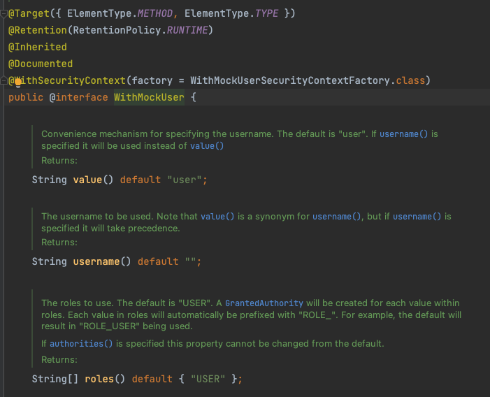 @WithMockUser(username = "test", roles = "USER")